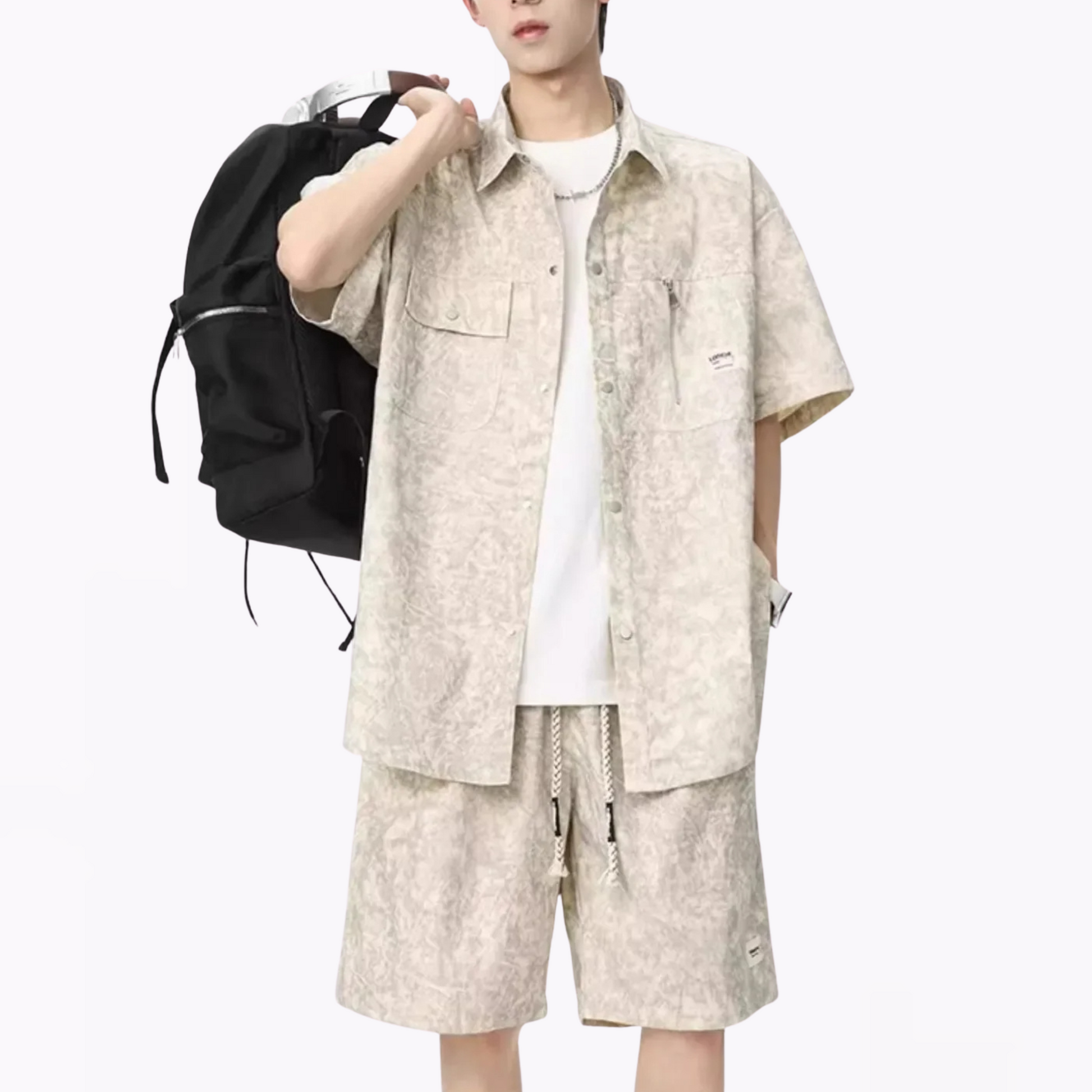 Crisp, oversized tailoring meets relaxed streetwear flow, giving you the perfect balance of sharp and laid-back. With matching shirt & shorts for an instant outfit that always looks intentional, this set is crafted from a premium textured cotton-blend thats soft on skin, breathable and designed for all day movement.